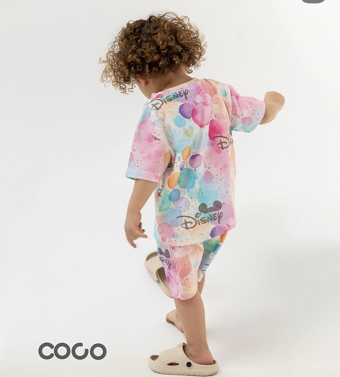 تیشرت شلوارک راحتی کوکو ست مادر و کودک طرح آبرنگی