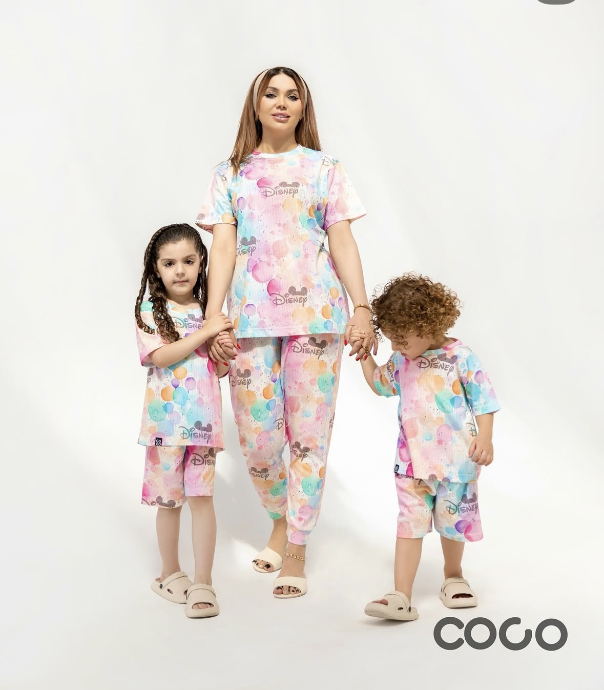 تیشرت شلوارک راحتی کوکو ست مادر و کودک طرح آبرنگی